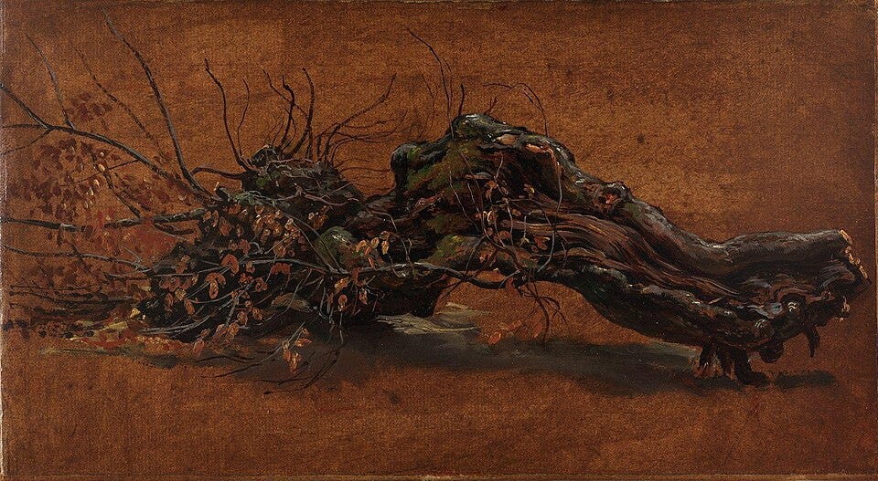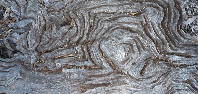 This bump on a log is also known (ka-nown) as a burl. It results when stress disrupts healthy growth to create a knot (ka-not). The tree grows beyond the stress and heals with a scar that reflects resilience. Burls create swirls, beautiful and strange, like the chemical clouds above a distant planet. The word “burl” unfurls all the way back to late Latin, when it once referred to a piece of wool.